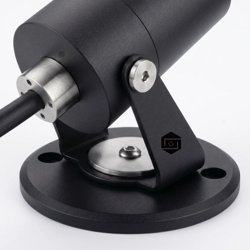 The circular mounting base features three pre-drilled fxing holes for fast, secure surface mounting on walls, columns, ceilings, or structural beams. The clean, minimalist matte black fnish integrates seamlessly into any architectural aesthetic.